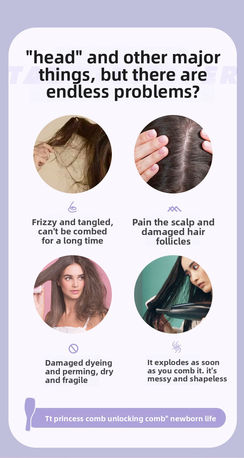 Hair Comb Supply Princess Style Comb Fluffy Smart Massage Comb Smooth Non-Knot Long Handle Massage Comb